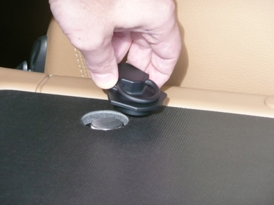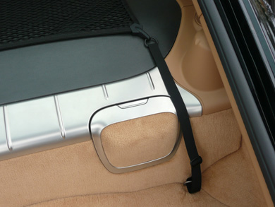 NOW BEGIN THE INSTALLATION OF THE AFT CARGO-NET ATTACHMENT-STRAPS BY INSERTING THE STRAPS THROUGH THE EXISTING D-RINGS IN THE LOWER TRUNK. |