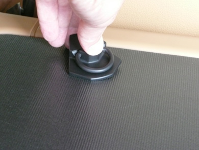 THE CARGO-NET ATTACHMENT D-RING FITTINGS ARE INSTALLED BY SIMPLY PRESSING THEM ON TO THE TOPS OF THE TRANSPARENT ENGINE COVER THUMB SCREWS. |
