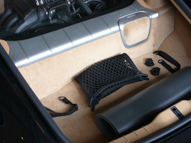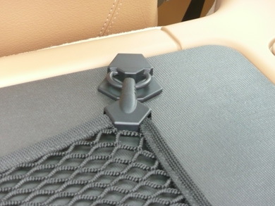 CARGO-NET SHOWN WITH THE TWO FORWARD HOOKS ATTACHED TO THE D-RING FITTINGS. |
