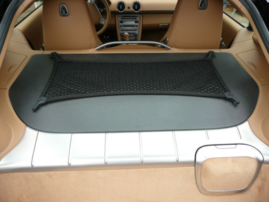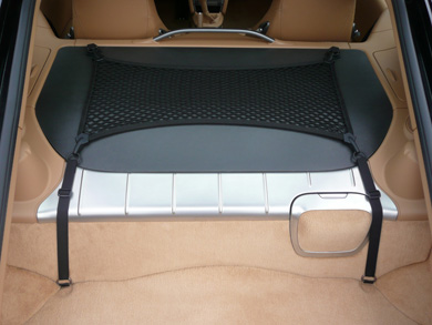 CARGO-NET INSTALLED AND PROPERLY TENSIONED. ADJUST THE STRAPS TO ACCOMMODATE